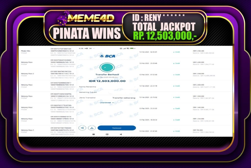 Bukti Jp MEME4D Slot Online 13 Februari 2025– MEME 4D merupakan situs terpercaya yang selalu membayar berapapun kemenangan semua pemain nya.