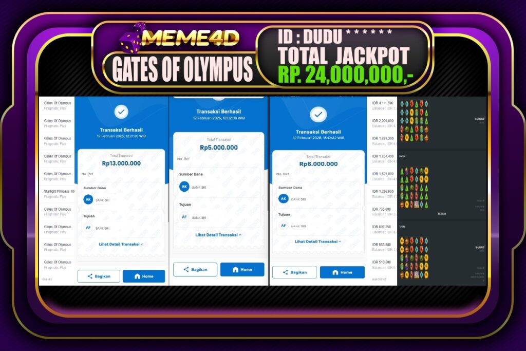 Bukti Jp MEME4D Slot Online 13 Februari 2025