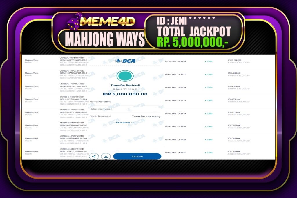 Bukti Jp MEME4D Slot Online 12 Februari 2025– MEME 4D merupakan situs terpercaya yang selalu membayar berapapun kemenangan semua pemain nya.