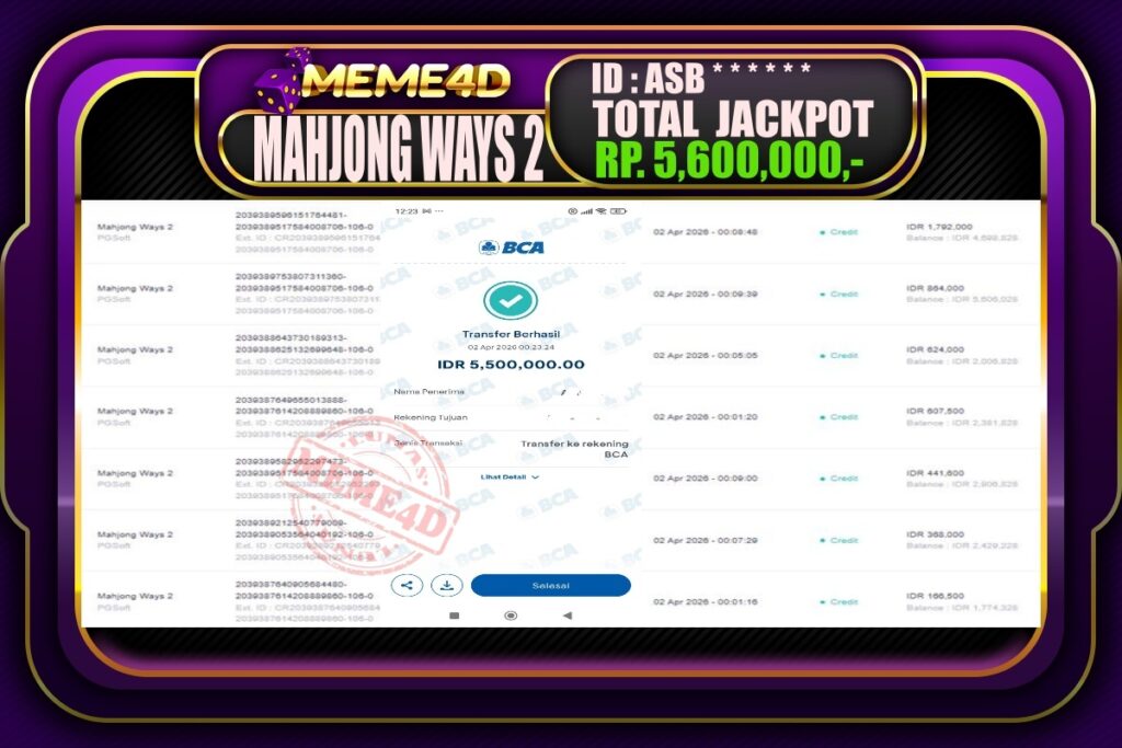 Bukti Jp MEME4D Slot Online 02 April 2026 – MEME4D merupakan situs terpercaya yang selalu membayar berapapun kemenangan semua pemain nya.