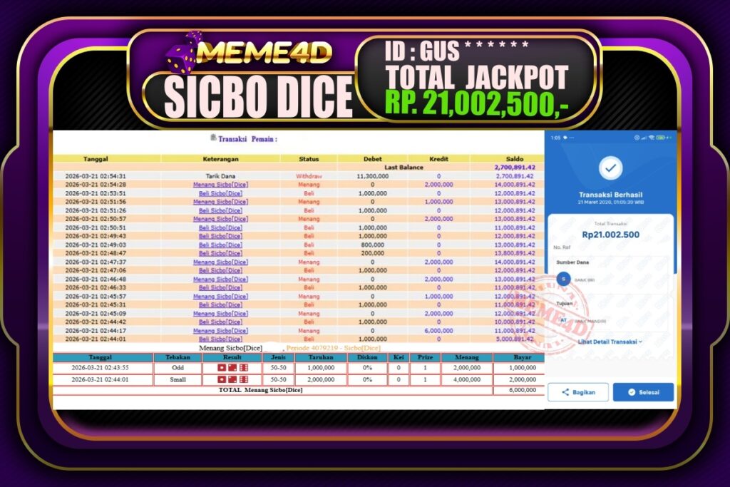 Bukti Jp MEME4D Casino Online 21 March 2026 – MEME4D merupakan situs terpercaya yang selalu membayar berapapun kemenangan semua pemain nya.