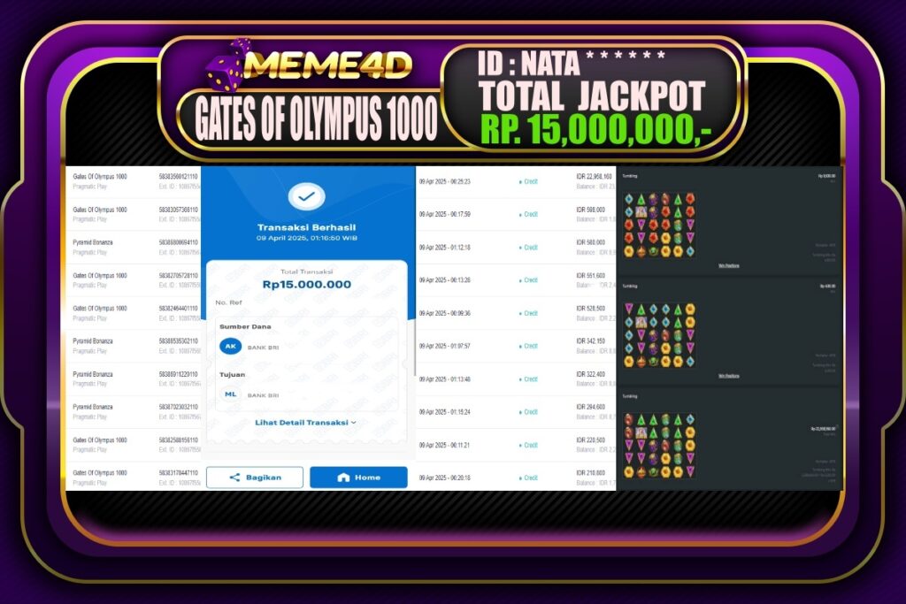 Bagi para pemain judi, tidak ada yang lebih memuaskan daripada melihat bukti nyata kemenangan dari pemain lain. Di Meme4D, banyak cerita inspiratif tentang jackpot yang telah dimenangkan, menunjukkan bahwa keberuntungan bisa datang kepada siapa saja. Setiap jackpot yang diraih bukan hanya hadiah uang, tetapi juga semangat dan motivasi bagi semua pemain untuk terus bermain dan mencoba peruntungan mereka.